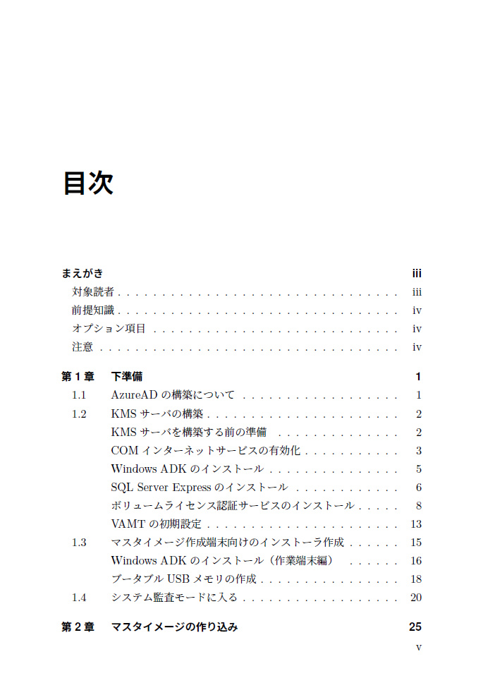 Windows 10を大規模展開する際に利用するマスタイメージ作成方法を解説した本です。本書では最新の機能更新、Windows 10 November 2019 Updateに対応させかつ、KMSサーバ、WSUSサーバの構築方法、AzureADへのハイブリッドジョイン、Intuneとの統合をあわせて解説した本です。