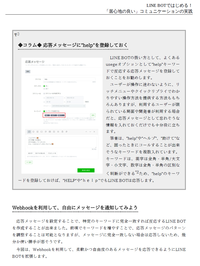 ◆コラム◆ 応答メッセージに"help"を登録しておく