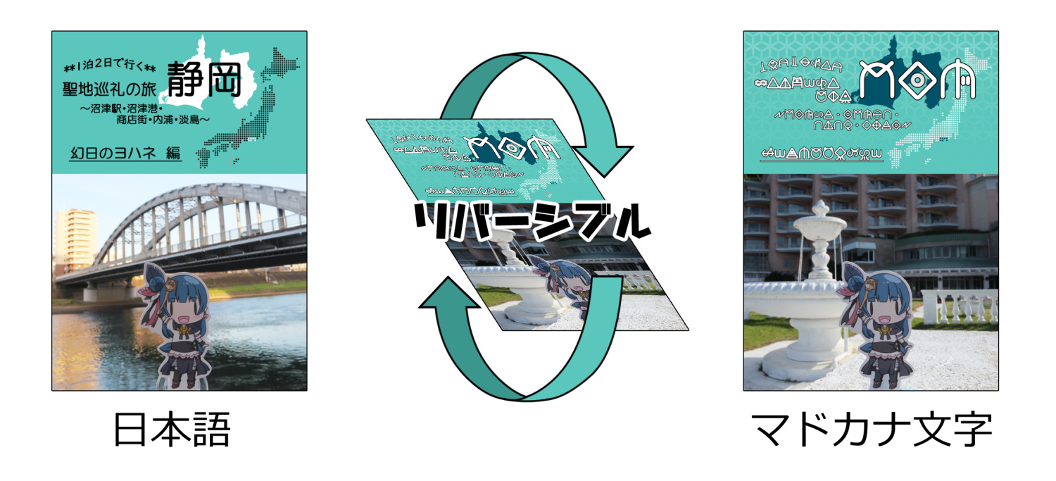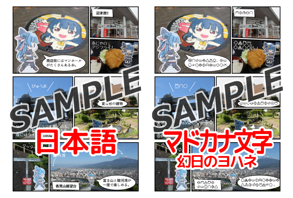 日本語版とマドカナ文字版(幻日のヨハネ文字)の2つを収録しています。