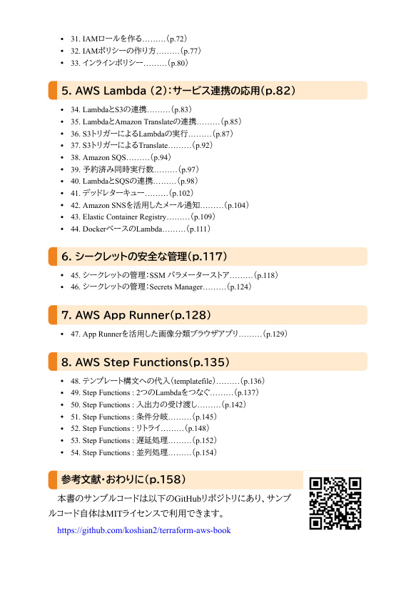 本書はAWSの初心者~若干触ったことのある方向けの本です。Terraformとは、HashiCorp社により開発しているオープンソースのインフラ自動構成ツールです。AWSだけでなく、Google CloudやAzure、Discordなどのインフラを構築可能です。Terraformでは、インフラのデプロイ設定や手順をコードとして記載する「Infrastructure as Code(IaC)」の一種です。IaCを使うことで、デプロイの作業手順を再利用できるようになり、統一化や状態変更に対して頑強なシステムを作ることができます。