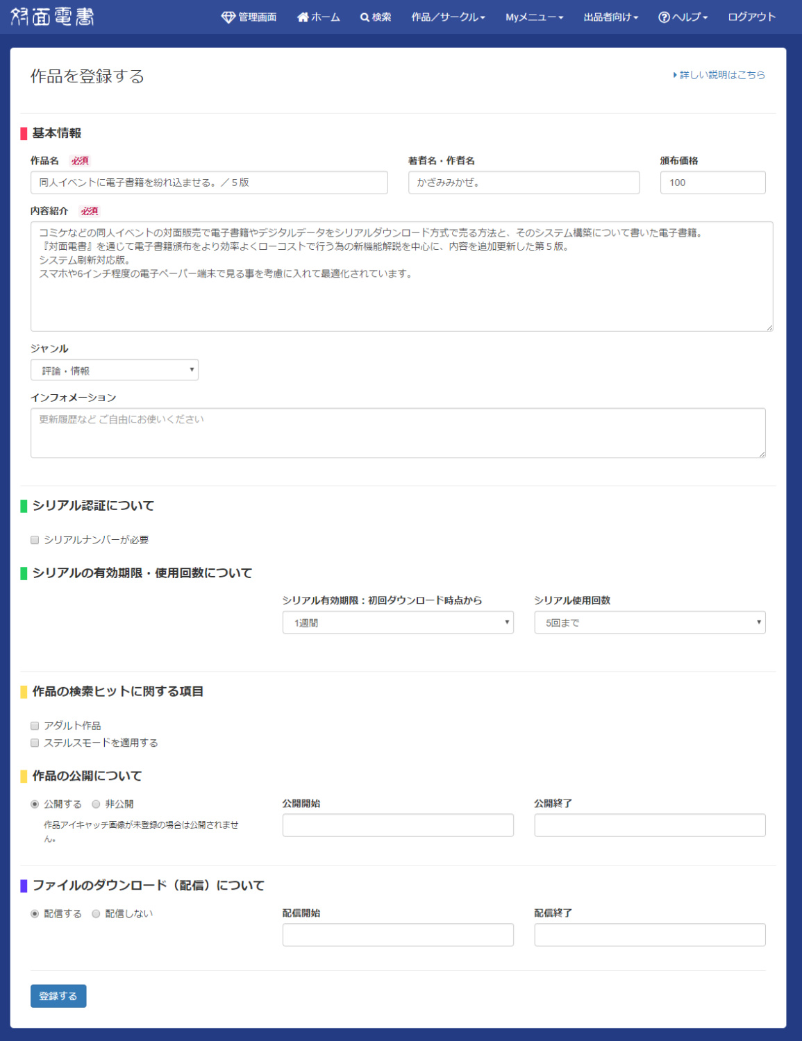 コミケなどの同人イベントの対面販売で電子書籍やデジタルデータをシリアルダウンロード方式で売る方法と、そのシステム構築について書いた電子書籍。