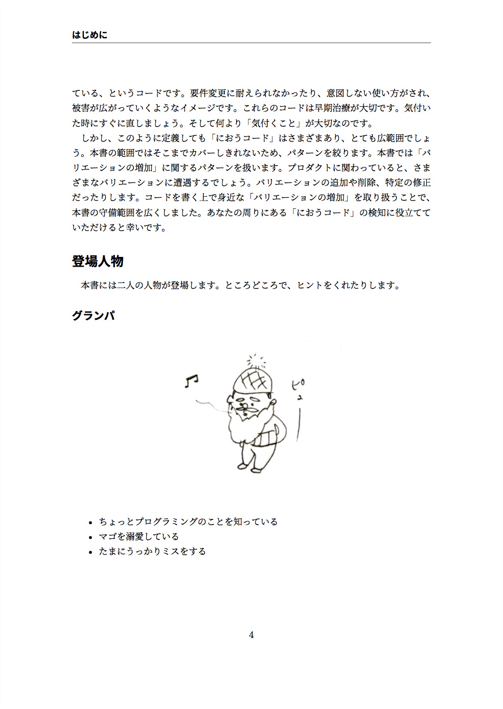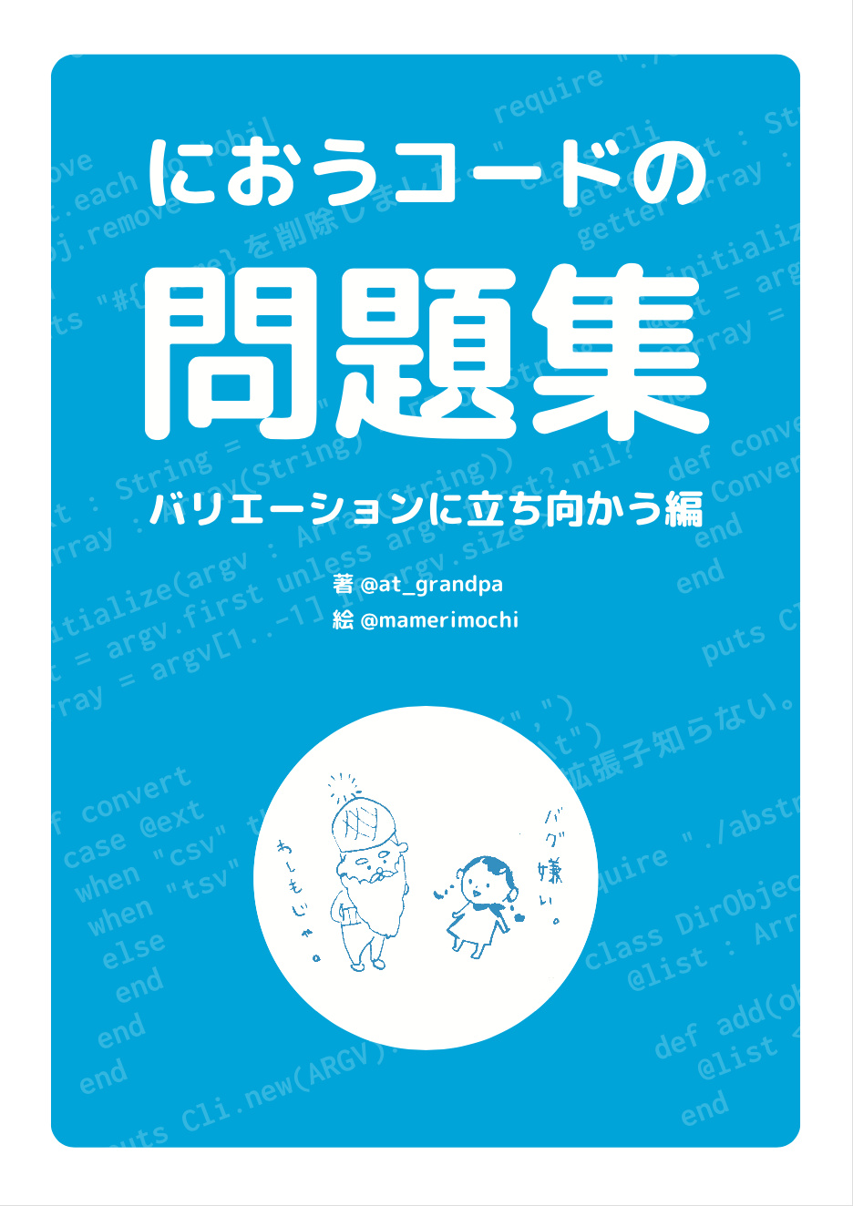 技術書典4で頒布した「におうコードの問題集〜バリエーションに立ち向かう編〜」です。グランパとマゴと一緒に、におうコードに対するリファクタリングをトレーニングしましょう。