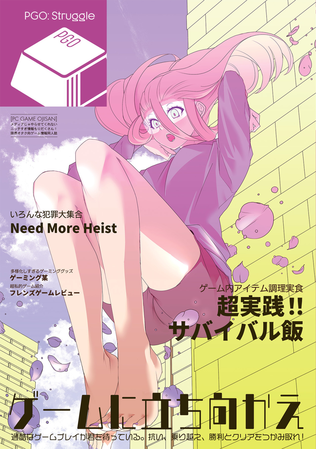 PCゲームの世界を深掘りする情報同人誌。巻頭企画は名作ゾンビサバイバル『7 Days to Die』のゲーム内料理を実際に調理する『超実践!サバイバル飯」。そのほか犯罪ゲームを一挙大紹介する『Need More Heist』やマンガコラムなど読み応えばっちり。