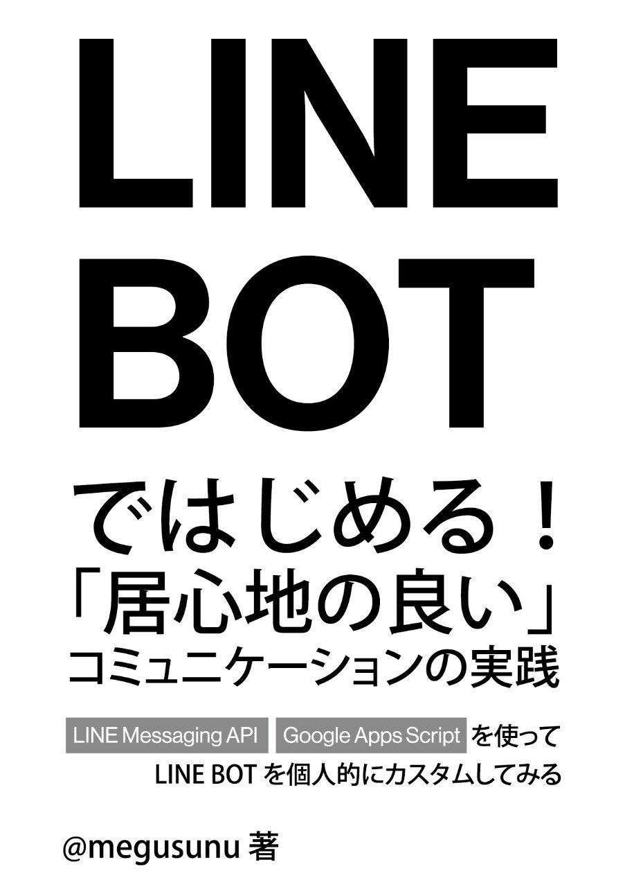 「日常を少しでも楽しくする」をテーマに、「LINE Messaging API」と「Google Apps Script」を使って個人用のLINE BOTを簡単に手軽に実装・運用するところまでを本書で紹介します。