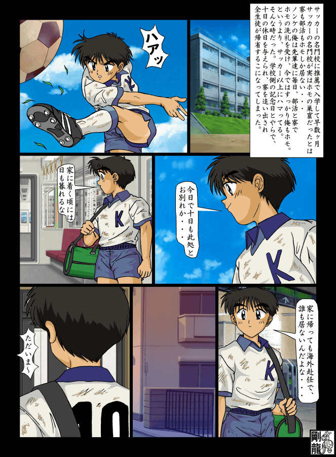 長沼博士(ながぬま ひろし)が高校受験でのサッカー部の寮生活から帰ってきて久々のオナニー三昧のひびを描いたカラー漫画