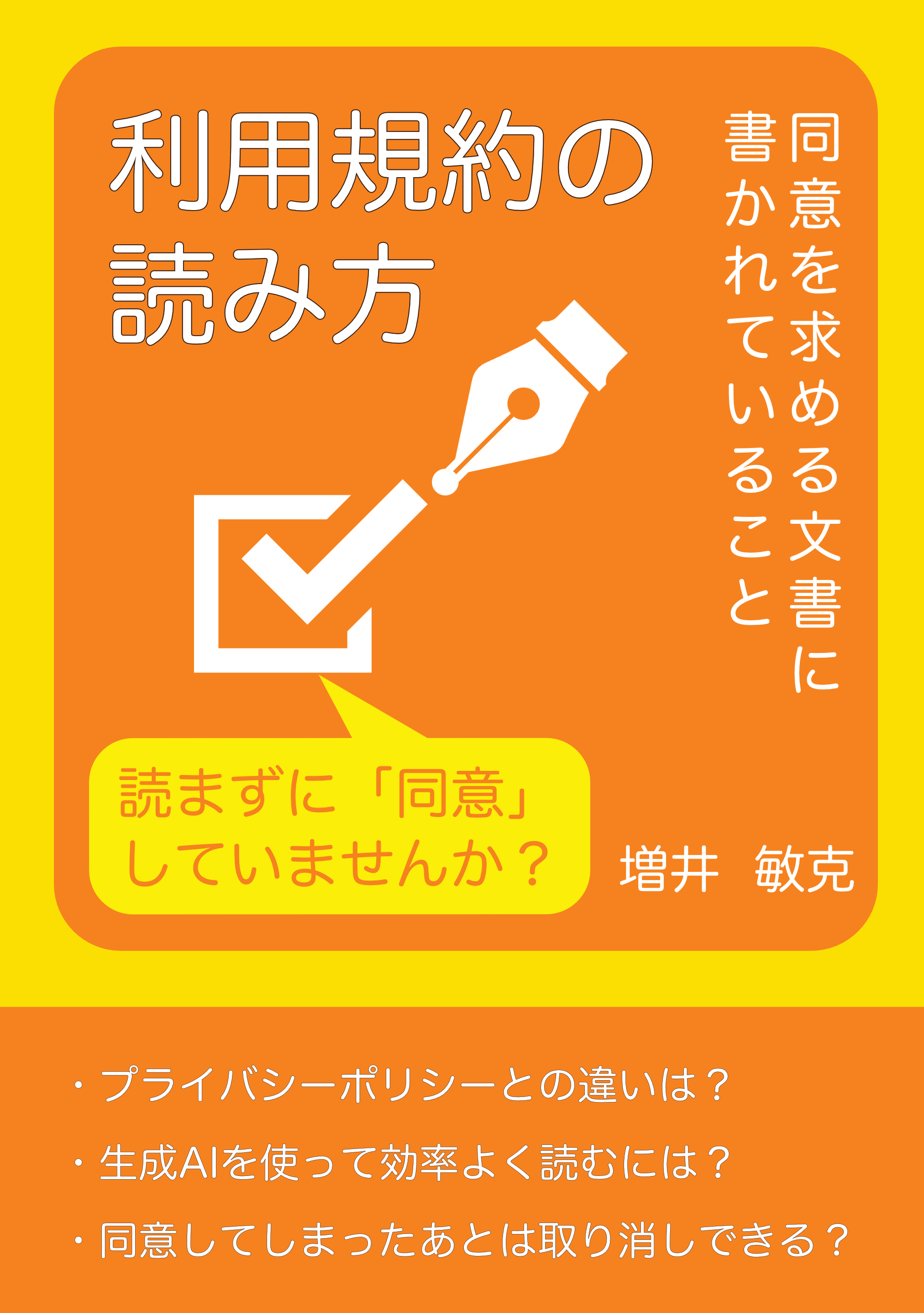 そこで本書では、スマートフォンやパソコンでアプリを導入するときや、インターネット上のサービスに登録するときに、一般の利用者がこれらの文書に同意する前に、どんなことが書かれているのかを知ることを目的にしています。